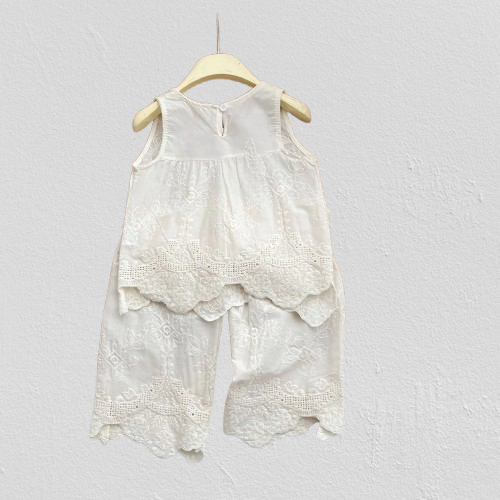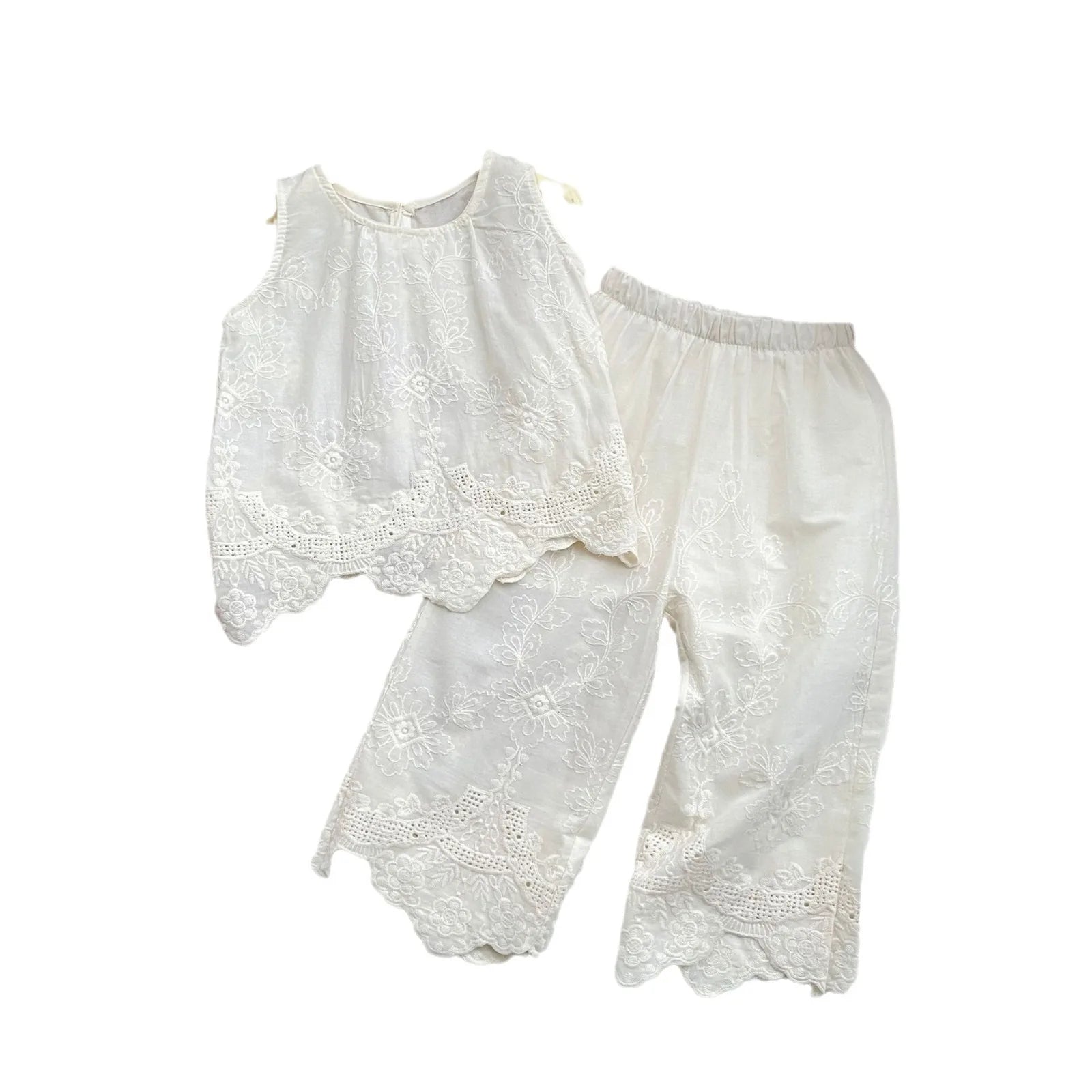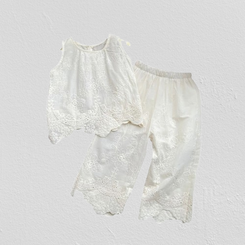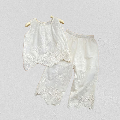 אווה - סט לבן ארוג תחרה מכנס + חולצה