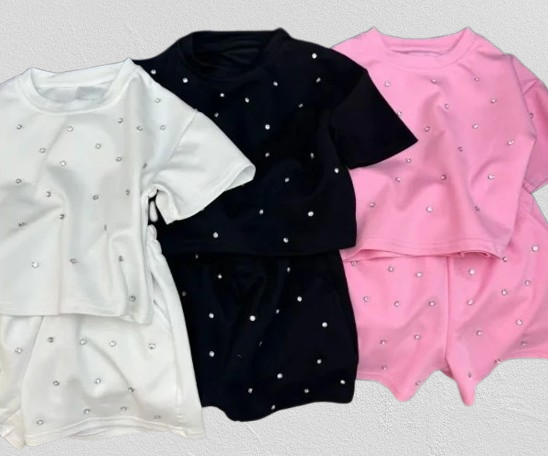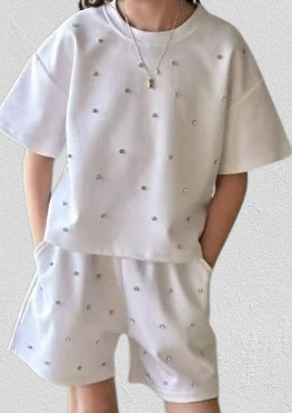 לונה - סט יהלומים 2 חלקים: חולצה צווארון עגול ומכנס קצר